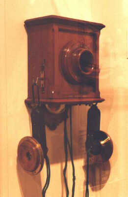 - case of walnut - 1 tin telephone with ringmagnet - carbon-bag microphone by Siemens & Halske - induction coil - magneto calling - polarized ringer - Lightning arrester - local battery working with DC- busy test